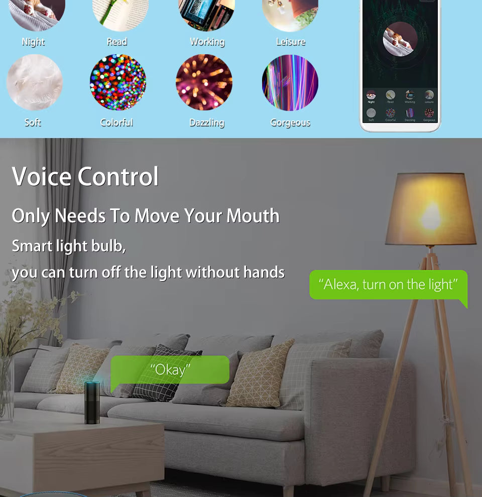 * Voice Control: easily realize voice control of all your smart bulbs by connecting with Amazon Alexa Echo or Google Home Assistant or Yandex Alice.
